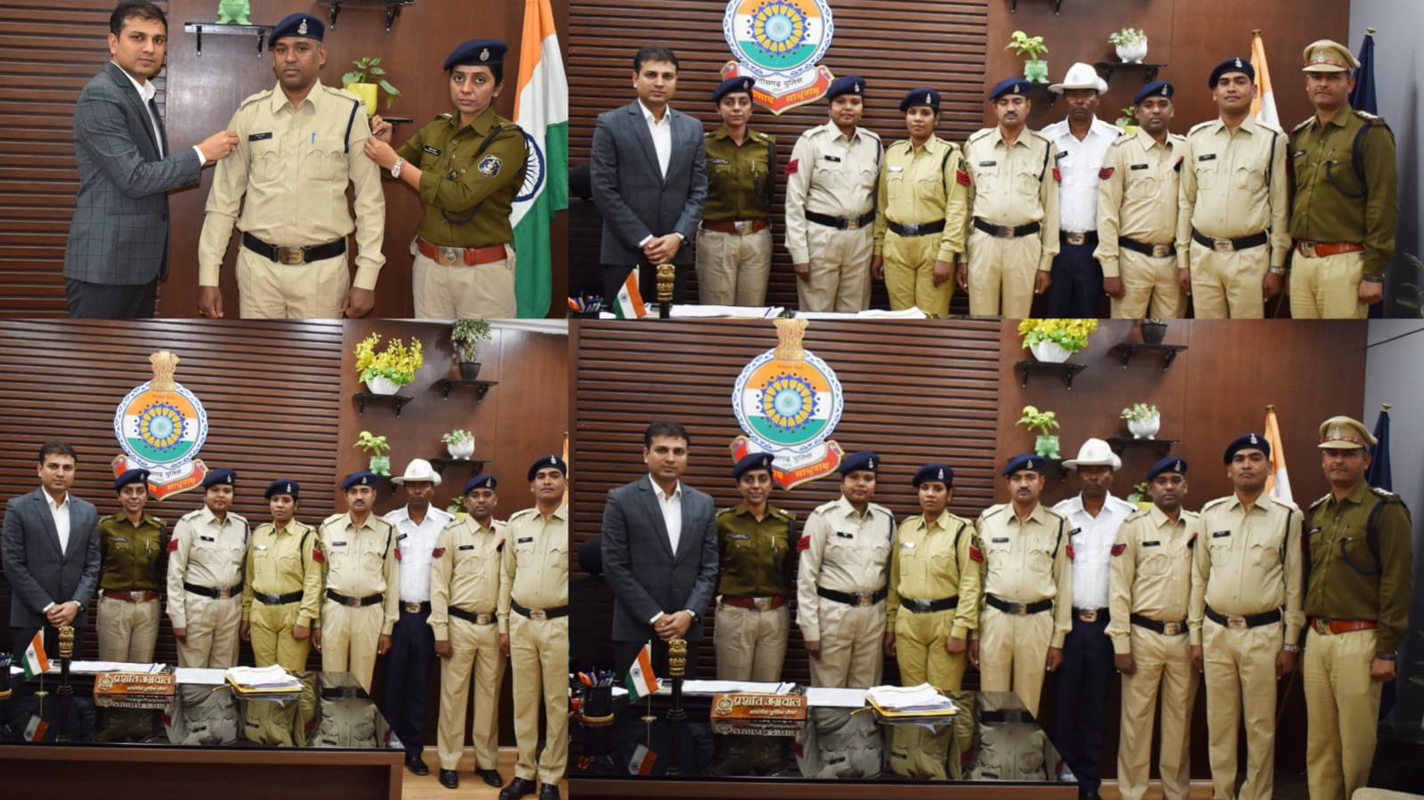 पुलिस अधीक्षक  द्वारा आरक्षक से प्रधान आरक्षक के पद पर पदोन्नत हुए 8 कर्मचारियों को लगाया गया बैज