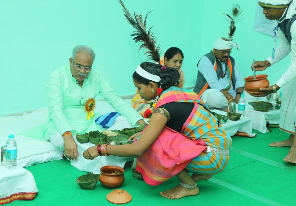 रायपुर, 3 फरवरी 2023/मुख्यमंत्री भूपेश बघेल आज कांकेर जिले के भानुप्रतापपुर में गोंडवाना समाज के सम्मेलन में शामिल हुए। इस दौरान उन्होंने गोंडवाना समाज के पदाधिकारियों के साथ दोपहर का भोजन किया। जिसमें उन्हें मिलेट, कोदो, कुटकी, रागी से तैयार किए गए पारंपरिक व्यंजन परोसे गए। इस अवसर पर उद्योग मंत्री कवासी लखमा, संसदीय सचिव शिशुपाल शोरी, अंतागढ़ विधायक अनूप नाग, भानुप्रतापपुर विधायक सावित्री मंडावी, जिला पंचायत के अध्यक्ष हेमंत कुमार धु्रव, बस्तर विकास प्राधिकरण के सदस्य बीरेश ठाकुर, जनपद अध्यक्ष बृजबत्ती मरकाम, जनपद उपाध्यक्ष सुनाराम तेता सहित समाज के सदस्य उपस्थित थे।