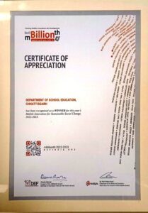 रायपुर, /छत्तीसगढ़ में स्कूल शिक्षा के क्षेत्र में ‘निकलर एप्प’ द्वारा पढ़ाई कराने के लिये स्कूल शिक्षा विभाग को एमबिलियंथ पुरस्कार से नवाजा गया है है। छत्तीसगढ़ को यह अवार्ड 6 मार्च को नई दिल्ली में आयोजित कार्यक्रम में प्रदान किया गया।