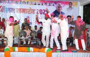 रायपुर / मुख्यमंत्री भूपेश बघेल आज रंगों के पर्व होली के अवसर पर राजधानी रायपुर के सुभाष स्टेडियम में आयोजित होली मिलन समारोह में शामिल हुए। उन्होंने निगम परिवार द्वारा आयोजित समारोह में प्रदेशवासियों, निगम के पदाधिकारियों, अधिकारियों-कर्मचारियों, सफाई कामगारों को होली पर्व की बधाई और शुभकामनाएं दी। महापौर ढेबर ने गौठान में महिला स्वसहायता समूहों द्वारा गोबर से बने गुलाल से तिलक लगाकर मुख्यमंत्री भूपेश बघेल का स्वागत किया और उन्हें शुभकामनाएं दीं।