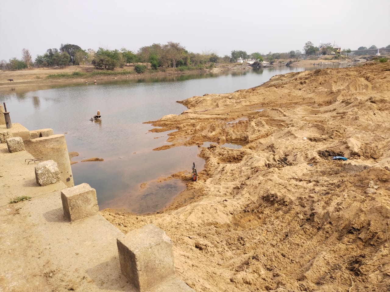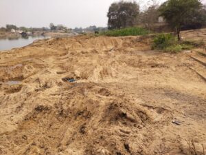 मौके पर देखा कि मंदिर समिति के जर्जर विश्राम गृह के पास बड़ी मात्रा में अच्छी क्वालिटी की रेत को डंप करके रखा गया है। इस बारे में मौके पर मौजूद ग्रामीणों से पता चला कि ठेकेदार के लोगोंं के द्वारा एनीकट से रेत को निकालकर डंप कराकर रखा जाता है। फिर रात में दूसरे लोगों के द्वारा उसी नदी से वाहनो से कई रेत की सप्लाई भी की जा रही है ग्रामीणों का कहना था कि अभी एनीकट के तटबंध निर्माण कार्य के लिए जेसीबी लगाकर सिर्फ लेबल लगाने का काम किया जा रहा है।