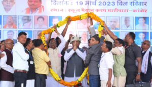 रायपुर, 19 मार्च 2023/ मुख्यमंत्री भूपेश बघेल ने आज कांकेर जिले के नरहरपुर विकासखण्ड के ग्राम करप में आयोजित कोसरिया मरार (पटेल) समाज के महासम्मेलन को संबोधित करते हुए कहा कि राजीव गांधी किसान न्याय योजना की चौथी किश्त की राशि 25 मार्च तक किसानों के खाते में पहुंच जाएगी। मुख्यमंत्री ने कहा कि कांकेर जिले में विकास कार्य निरंतर जारी है, स्कूल-कॉलेज खुल रहे हैं। मेडिकल कॉलेज की सुविधा के साथ हाट-बाजार में ग्रामीणों को निःशुल्क इलाज मिल रहा है। मुख्यमंत्री ने कार्यक्रम में कांकेर जिले के विकास के लिए 143.92 करोड़ रूपये की लागत के 95 विभिन्न विकास कार्यों का भूमिपूजन एवं लोकार्पण किया।
