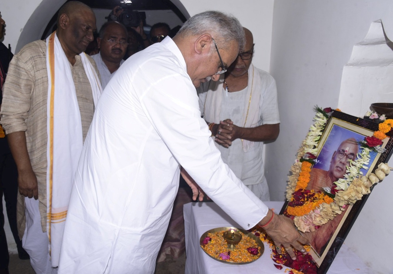 रायपुर, /मुख्यमंत्री भूपेश बघेल बिलासपुर जिले के अकलतरी गांव पहुंचकर समाजसेवी स्वर्गीय ओमप्रकाश शर्मा के तेरहवीं कार्यक्रम में शामिल हुए। उन्होंने स्वर्गीय ओमप्रकाश शर्मा के छायाचित्र पर पुष्प अर्पित कर उन्हें श्रद्धांजलि अर्पित की और परिवारजनों को सांत्वना दी। ओमप्रकाश शर्मा का विगत 31 मार्च को निधन हो गया था। वे मुख्यमंत्री के सलाहकार प्रदीप शर्मा के दादा थे।