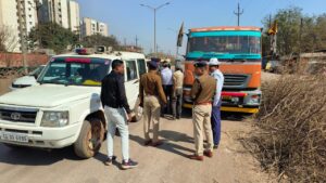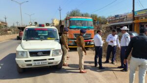 साथ ही रायपुर शहर के सबसे व्यस्ततम चौक टाटीबंध क्षेत्र में ट्रक चालकों द्वारा आम रास्तों पर वाहन खड़ी कर यातायात अवरुद्ध करने को संज्ञान में लेते हुए डीसी पटेल अतिरिक्त पुलिस अधीक्षक रायपुर (पश्चिम),मयक गुर्जर नगर पुलिस अधीक्षक आजाद चौक के साथ निरीक्षक एलेक्जेंडर किरो थाना कबीर नगर, निरीक्षक एसआर सोनी थाना आमानाका, निरीक्षक विशाल कुजुर यातायात थाना टाटीबंध एवं हमराह स्टाफ के साथ संयुक्त रूप से पांच ट्रक चालकों पर भारतीय दंड विधान की धारा 283 के तहत कार्यवाही करते हुए एफ आई आर दर्ज की गई एवं नो पार्किंग में वाहन खड़ी करने वाले सभी वाहन चालकों को समझाइश दी गई साथ ही नो पार्किंग में वाहन खड़ी करने वालों के विरुद्ध कार्यवाही लगातार जारी रहेगी।