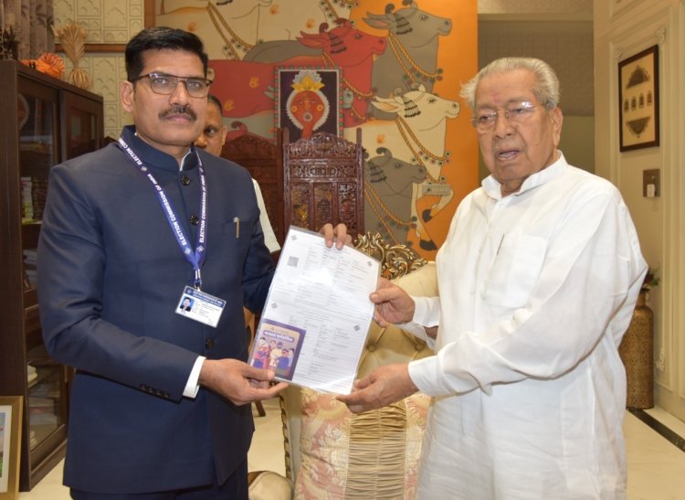 रायपुर। राज्यपाल हरिचंदन को रिटर्निंग अधिकारी बीबी पंचभाई ने मंगलवार को राज भवन में मतदाता सूचना पर्ची तथा मतदाता मार्गदर्शिका प्रदान की गई ।