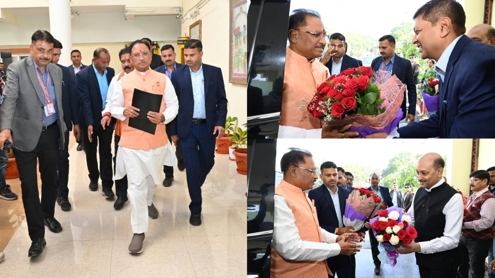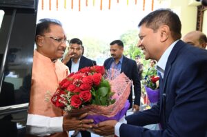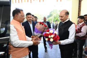 मुख्य सचिव अमिताभ जैन और अपर मुख्य सचिव सुब्रत साहू सहित अधिकारियों ने उनका स्वागत किया।