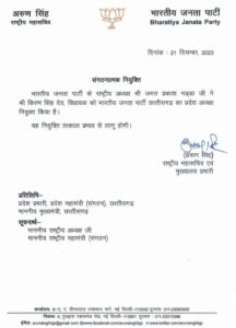 रायपुर। भारतीय जनता पार्टी के राष्ट्रीय अध्यक्ष जगत प्रकाश नड्डा ने किरण सिंह देव ( विधायक) को भारतीय जनता पार्टी छत्तीसगढ़ का प्रदेश अध्यक्ष नियुक्त किया है। यह नियुक्ति तत्काल प्रभाव से लागू हो गई है। इस संबंध में राष्ट्रीय महासचिव एवं मुख्यालय प्रभारी अरुण सिंह ने नियुक्ति आदेश जारी कर दिया है।