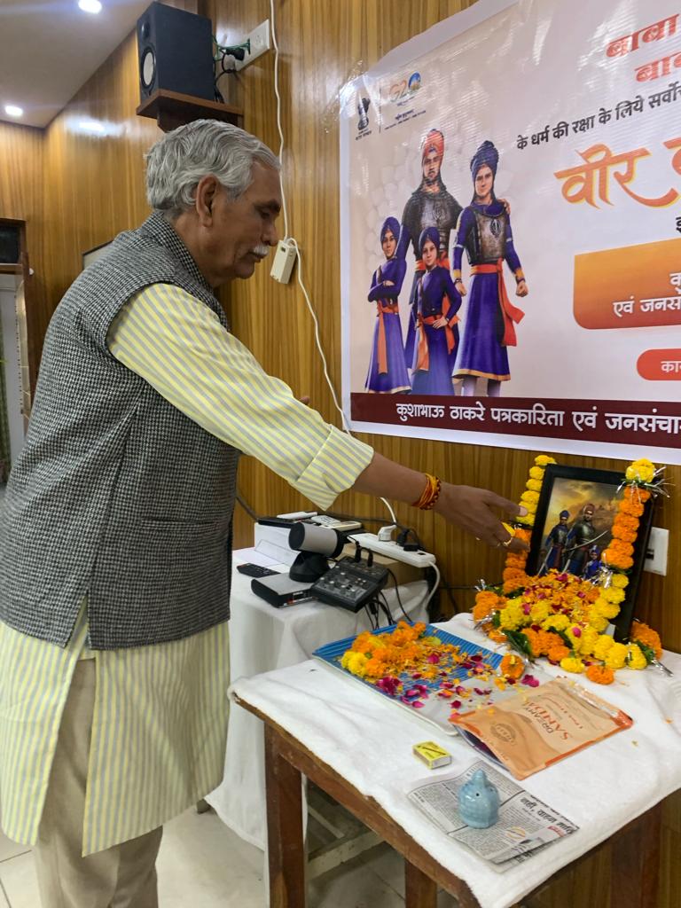 रायपुर. कुशाभाऊ ठाकरे पत्रकारिता एवं जनसंचार विश्वविद्यालय में संपूर्ण मानवता के गुरु, गुरु गोविंद सिंह जी के वीर साहिबजादे बाबा जोरावर सिंह जी और बाबा फतेह सिंह जी की शहादत को श्रद्धांजलि अर्पित करते हुए वीर बाल दिवस का आयोजन किया गया। कार्यक्रम की अध्यक्षता कुलपति प्रो. बल्देव भाई शर्मा ने की। मुख्य अतिथि पत्रिका समाचार पत्र के स्टेट एडीटर श्री राजेश लाहौटी थे।