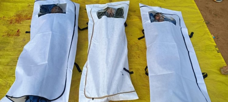 सर्च अभियान के दौरान दिनांक 20/01/2024 के सुबह 7.30 बजे बेलम गुटटा के पहाड़ी में पुलिस और माओवादियों के बीच हुए मुठभेड़ में मददेड़ एरिया कमेटी के सक्रिय माओवादी जिसमें 2 महिला माओवादी एवं 1 पुरूष माओवादी को मार गिराने में पुलिस को सफलता मिली। मौके पर सर्चिंग के दौरान 2 भरमार, 1 पिस्टल,5 नग जिंदा कारतूस, 15 नग जेलेटिन, 5 नग डेटोनेटर, कोडेक्स वायर 15 मीटर, विस्फोटक पदार्थ, माओवादी साहित्य, माओवादी वर्दी, पीटठू एवं अन्य दैनिक उपयोग की सामग्री बरामद किया गया। क्षेत्र में सघन गश्त सर्चिंग अभियान जारी है।