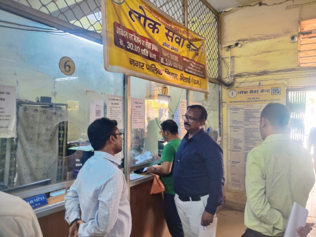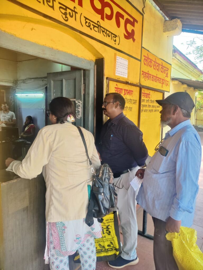 दुर्ग कलेक्टर सुश्री रिचा प्रकाश चौधरी द्वारा समय सीमा की बैठक में लोक सेवा केंद्रों की आकस्मिक जांच किए जाने के निर्देश के बाद आज दुर्ग एसडीएम मुकेश रावते और तहसीलदार प्रफुल्ल कुमार गुप्ता में अलग अलग स्थानों में संचालित लोक सेवा केंद्रों की आकस्मिक जांच की। एसडीएम मुकेश रावते ने सुपेला स्थित लोक सेवा केंद्र की तो तहसीलदार प्रफुल्ल गुप्ता ने तहसील ऑफिस दुर्ग स्थित लोक सेवा केंद्र की जांच की । तहसीलदार प्रफुल्ल कुमार गुप्ता ने तहसील कार्यालय स्थित लोक सेवा केंद्र में अपनी पहचान छुपाकर आवेदक बनकर निवासी प्रमाण पत्र बनाने आवेदन पेश किया और उसमें लगने वाले दस्तावेजों और लगने वाले शुल्क के संबंध में पूछताछ किया।